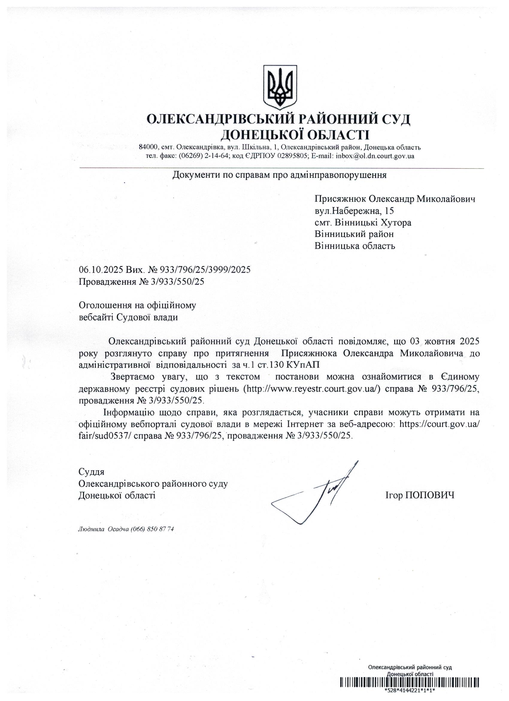 Олександрівський районний суд Донецької області