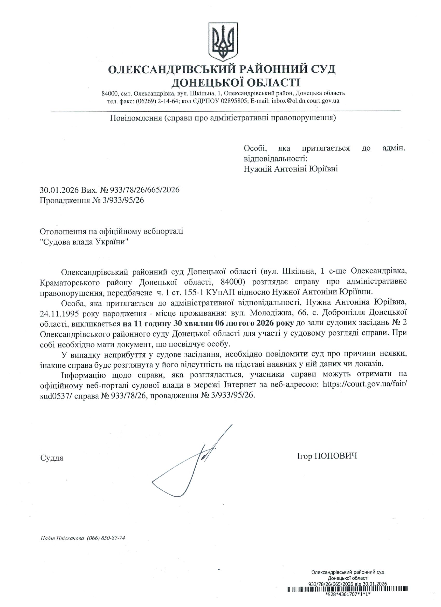 Оголошення для Нужної А.Ю.
