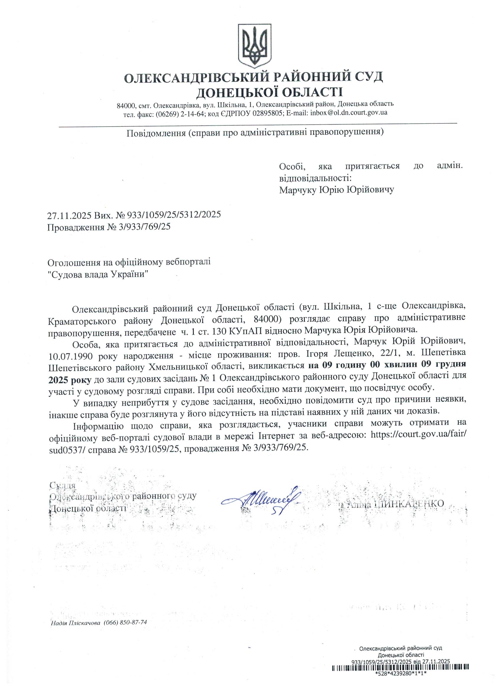 Оголошення для Марчука Ю.Ю.