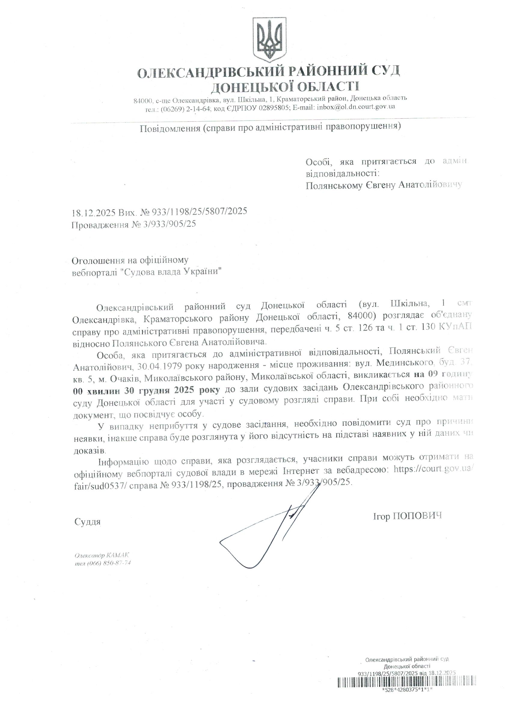 Оголошення для Полянського Є.А.