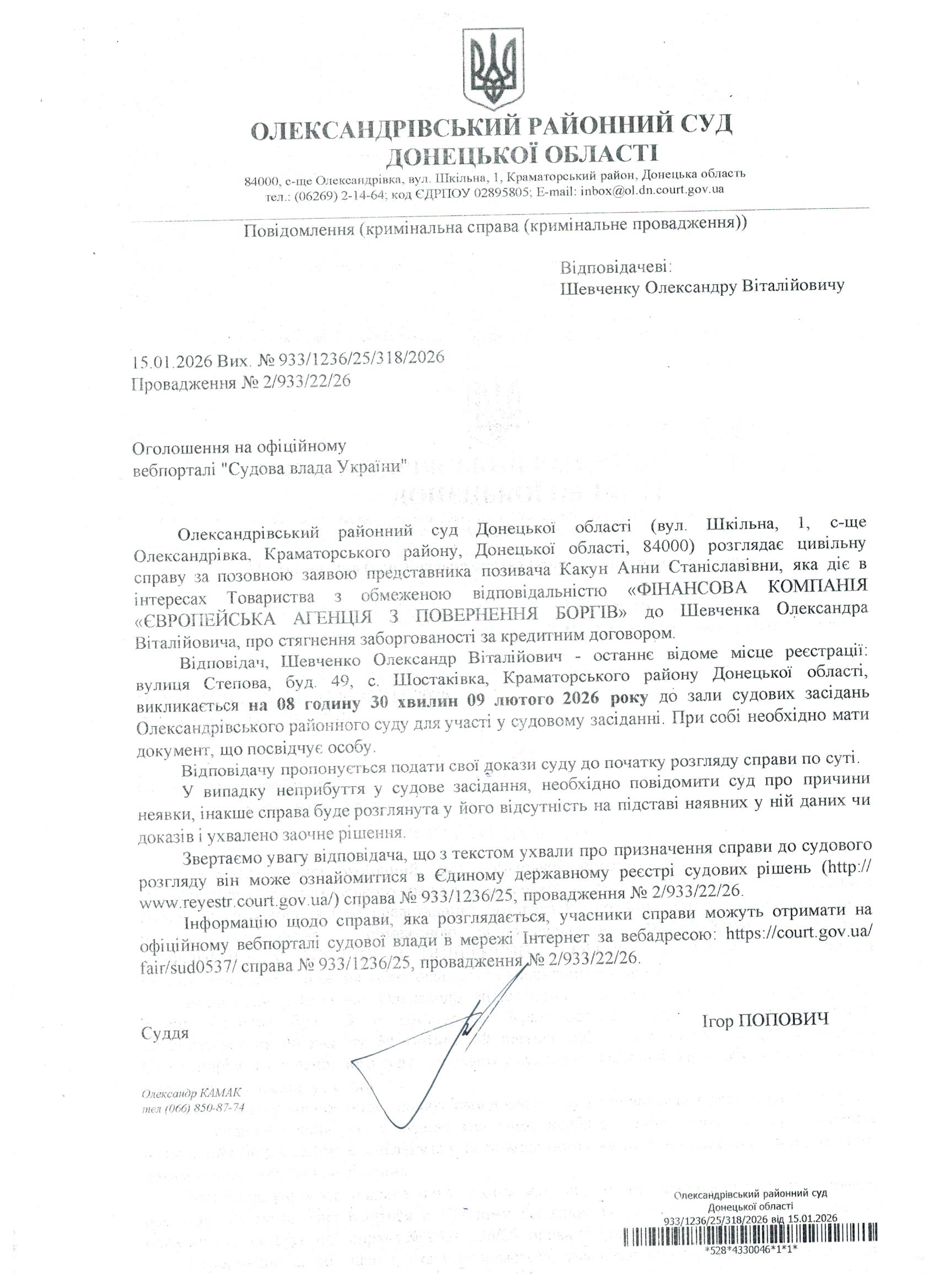 Єдиний Контакт-центр судової влади України 044 207-35-46