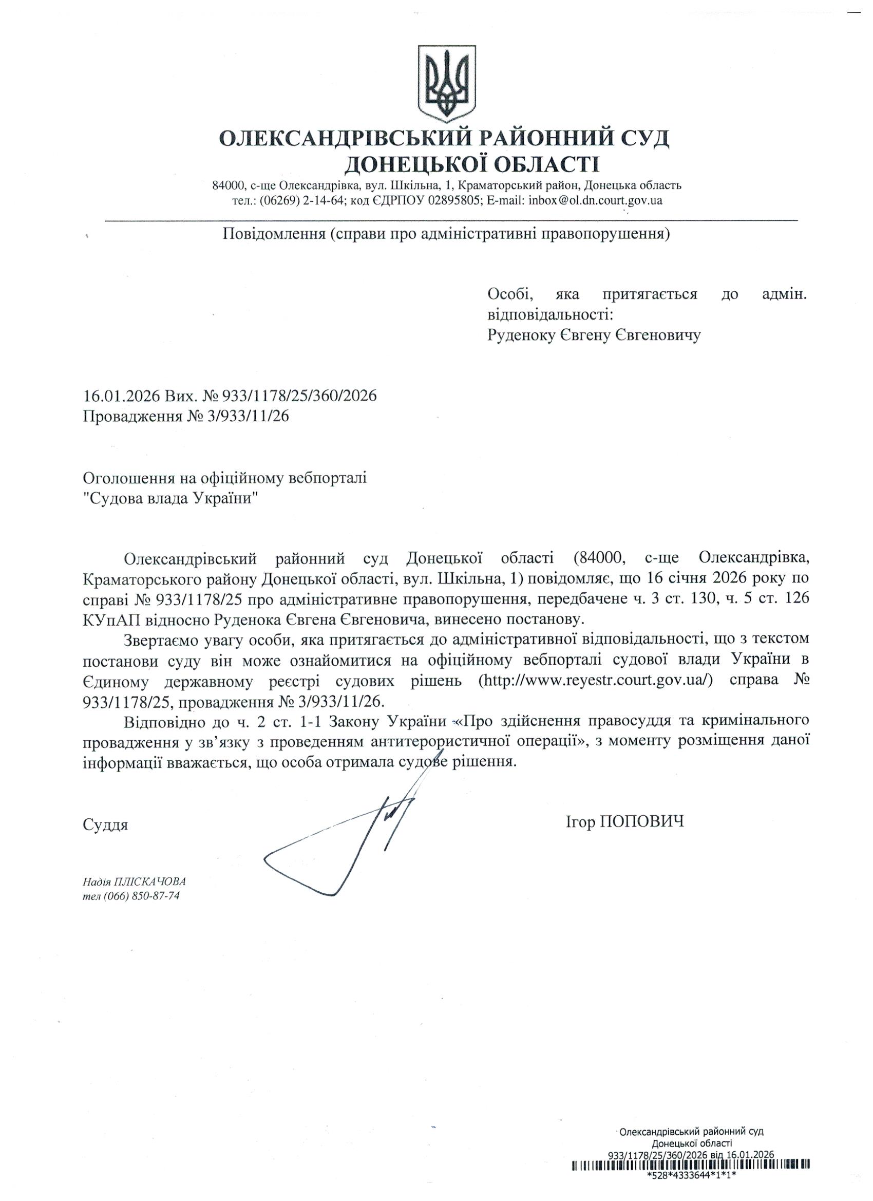 Оголошення для Руденока Є.Є.